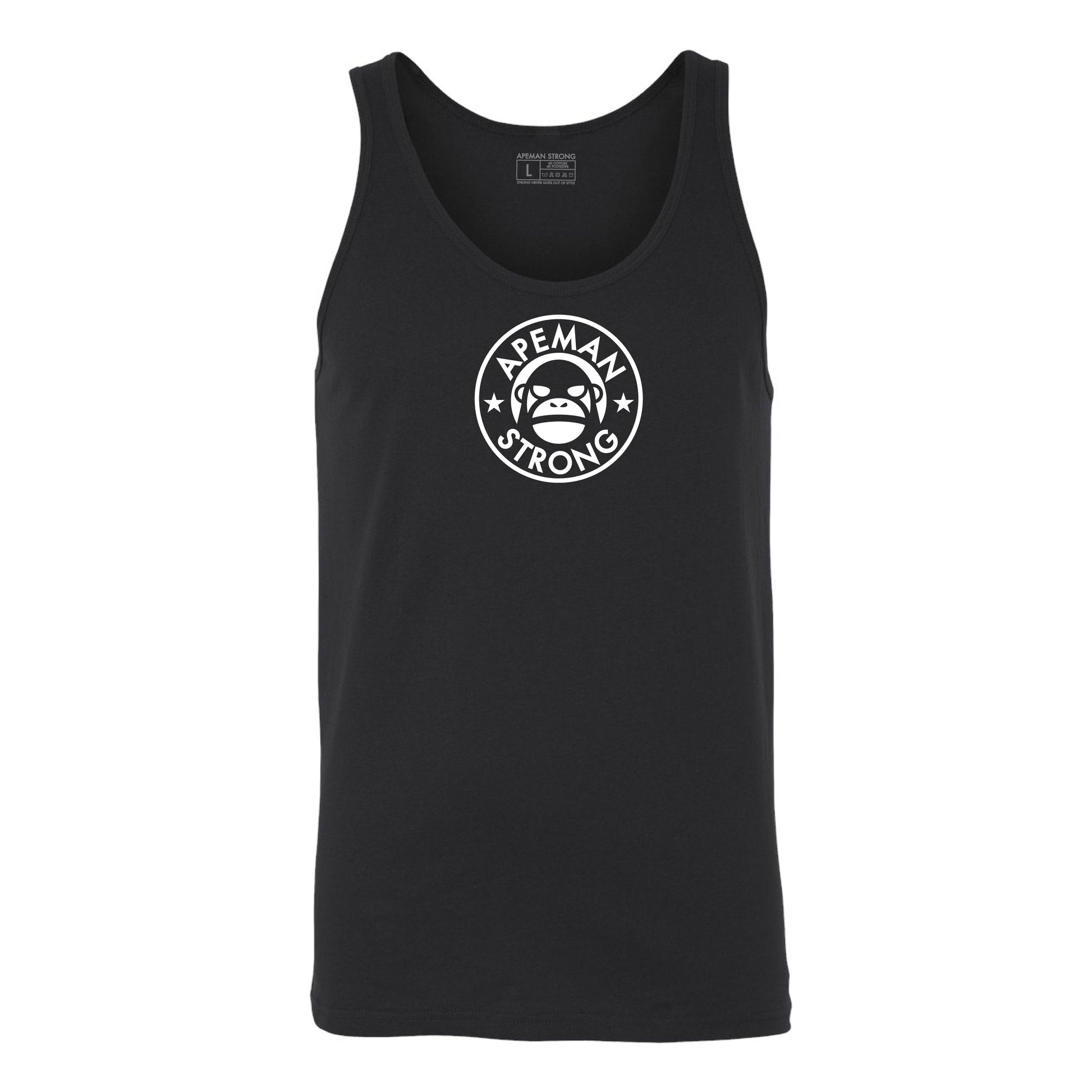 Black body. White Apeman Strong logo.