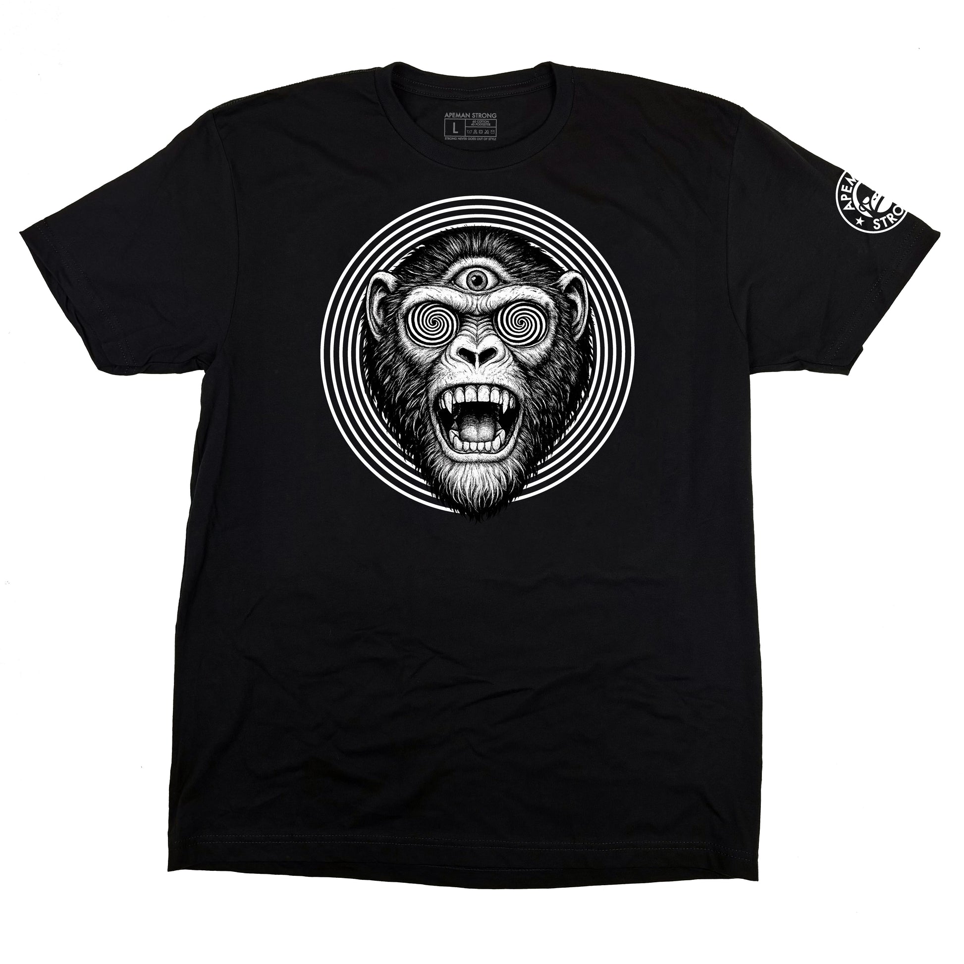PRESALE RELEASE. The Hypno Ape Tee will be available for purchase in unlimited quantities until Tuesday, February 10. After that time, some or all sizes may be unavailable.